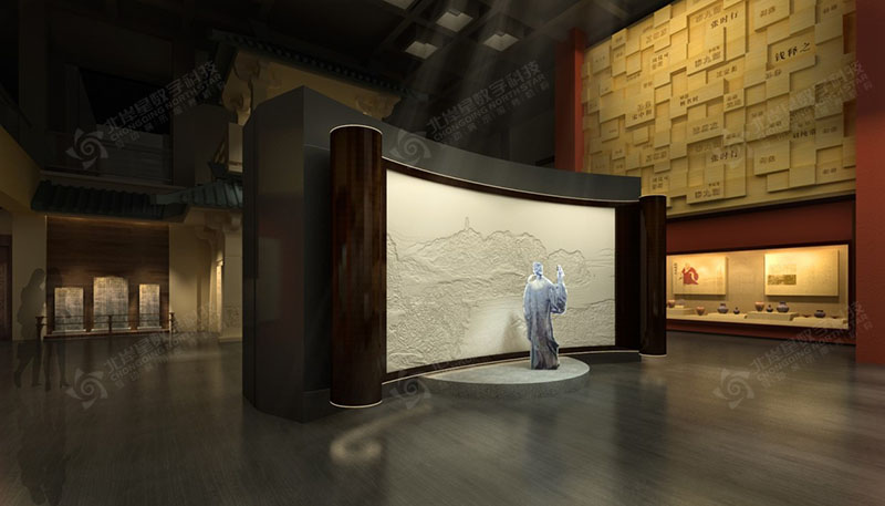 項(xiàng)目包含9米高的L折幕、全息紗幕投影、3D動(dòng)畫制作、航拍視頻、互動(dòng)書法簽名系統(tǒng)、AR互動(dòng)拍照系統(tǒng)、觸摸屏軟件查詢系統(tǒng)、詩詞查詢系統(tǒng)、文化遺址電子沙盤、ipad無線全館設(shè)備及燈光中控系統(tǒng)、水墨動(dòng)畫等……